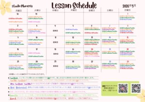 皆様にいろいろなクラスを受講いただくために、毎月変えています。20日前後に翌月のスケジュールを店頭、HP、SNSでお知らせしています。