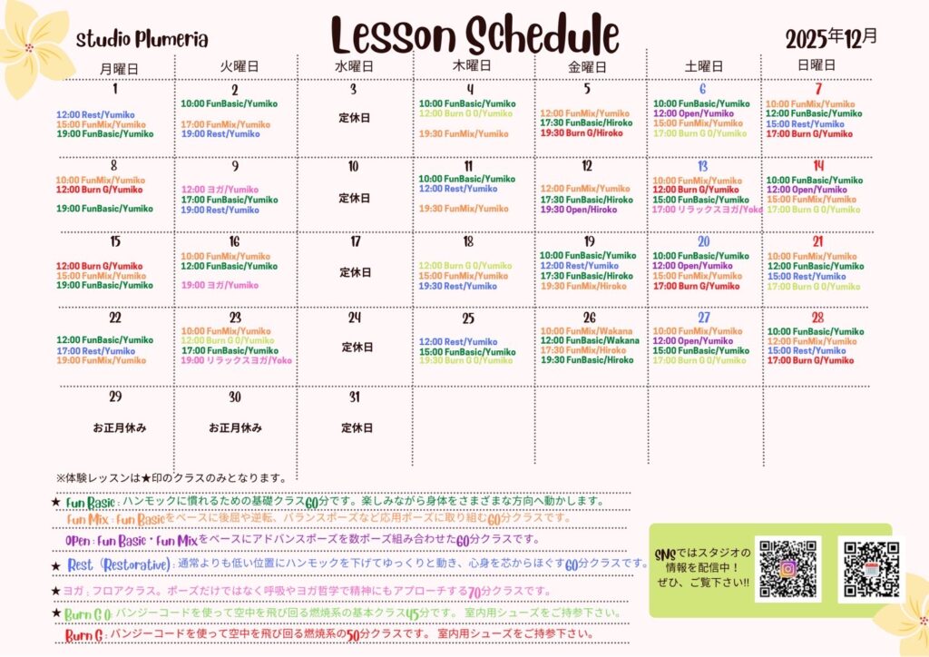☃️StudioPlumeria、2025年12月のスケジュールです🍰